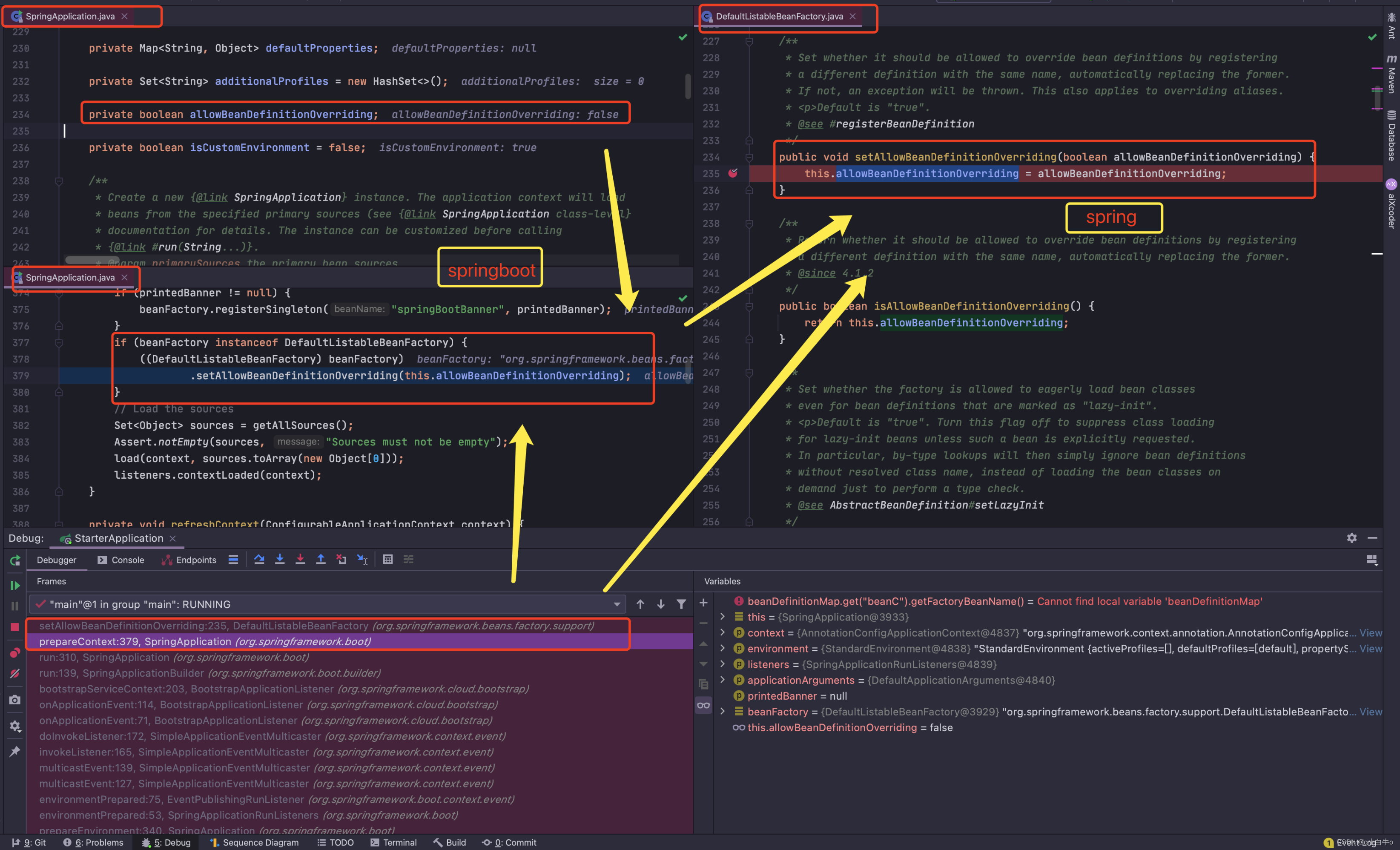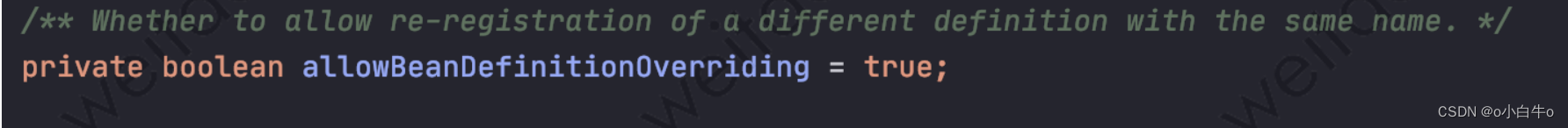 spring是将allowBeanDefinitionOverriding默认值设置为true的,但是,经过了springboot的包装,springboot把allowBeanDefinitionOverriding默认值设置为false了,然后把值设置到org.springframework.beans.factory.support.DefaultListableBeanFactory#allowBeanDefinitionOverriding属性上,
