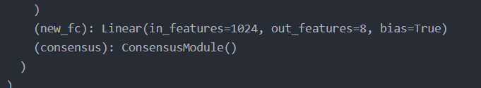 3.将数据导入model中进行训练时,会执行model(input_var)时,会自动调用model.forward(),函数中会执行base_out=self.base_model(input.view((-1,sample_len)+input.size()[-2:])) | ||