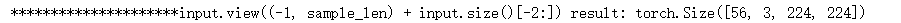 3.2执行input.view((-1,sample_len) | torch.size[56,3] | (-1.sample_len)中-1表示根据其他位,自动计算 |