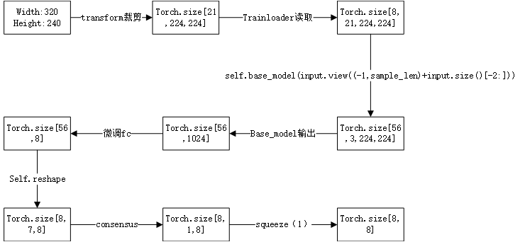 5 .self.reshape | torch.size[8,7,8] | 片段级预测,7为稀疏采样张数 |