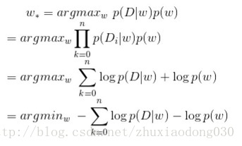 给定观察数据D, 贝叶斯方法通过最大化后验概率估计参数w。