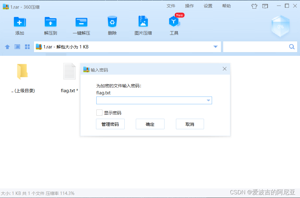 保存并解压,发现有密码,1-6位爆破一下,发现不行,看来得找密码了;