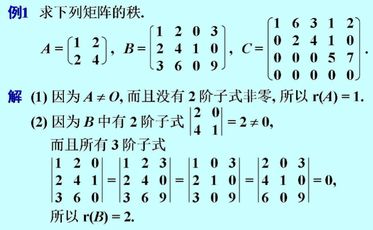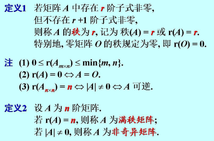 3. 矩阵的秩的定义(满秩矩阵、非奇异矩阵、矩阵可逆、矩阵的行列式不等于零这几个概念是等价的)