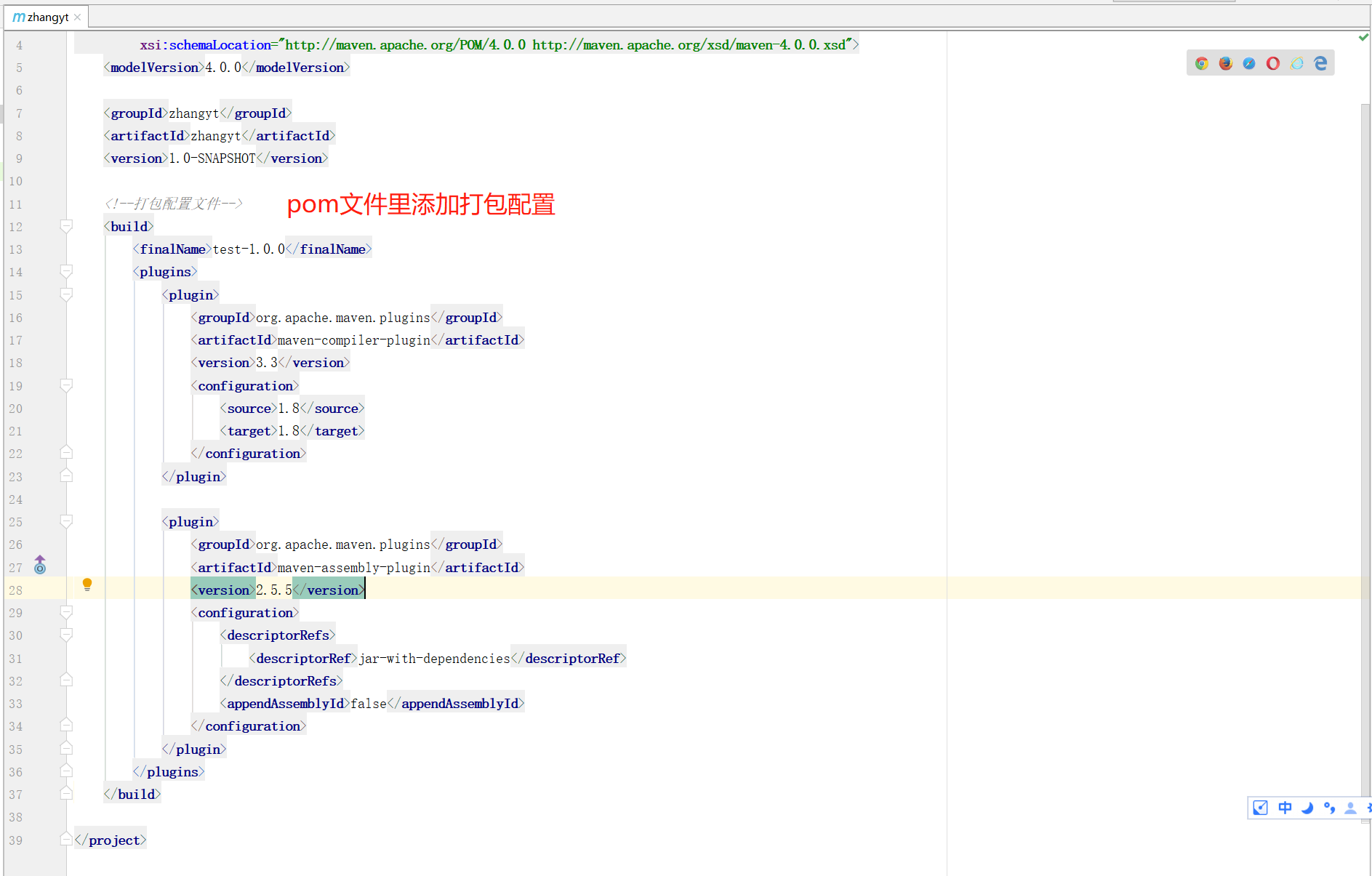 2、pom文件添加maven-assembly-plugin打包配置