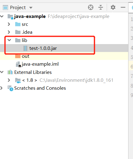 在项目根目录下新建一个lib文件,将我们打包的jar放进去