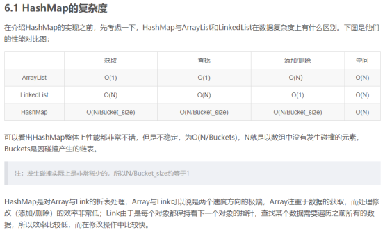 HashMap 里面是一个数组,然后数组中每个元素是一个单向链表,查找的时间复杂度为O(N),N为链表的长度;
