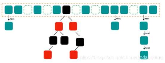 我们根据数组元素中,第一个节点数据类型是 Node 还是 TreeNode 来判断该位置下是链表还是红黑树的。