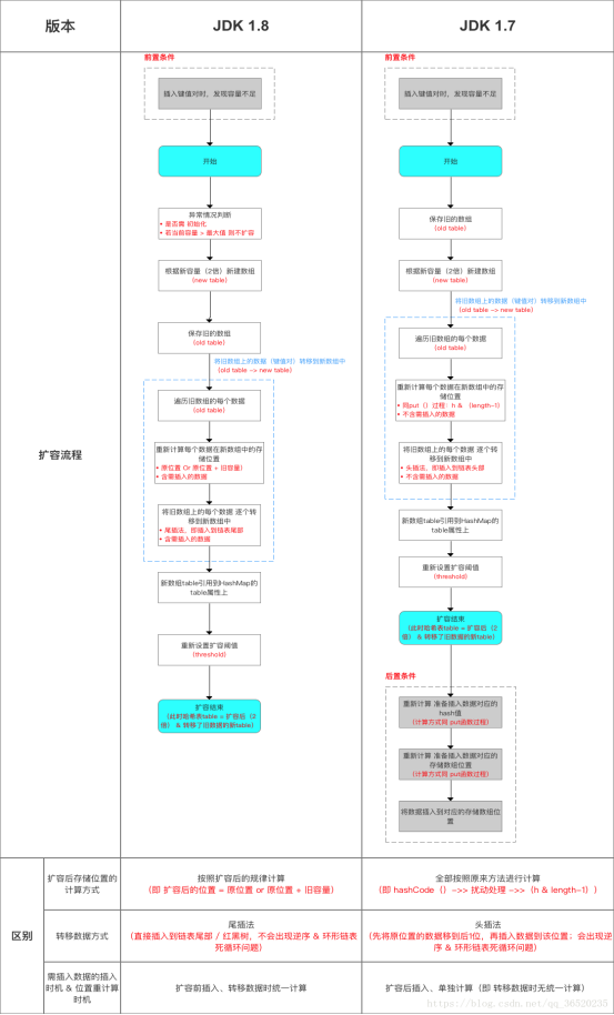 另外,和 Java7 稍微有点不一样的地方就是,Java7 是先扩容后插入新值的,Java8 先插值再扩容,不过这个不重要。