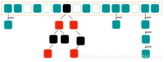 - JDK1.7的时候使用的是数组+ 单链表的数据结构。但是在JDK1.8及之后时,使用的是数组+链表+红黑树的数据结构(当链表的深度达到8的时候,也就是默认阈值,就会自动扩容把链表转成红黑树的数据结构来把时间复杂度从O(n)变成O(logN)提高了效率)