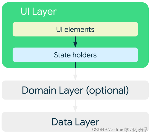- 界面层(UI):在屏幕上显示应用数据。