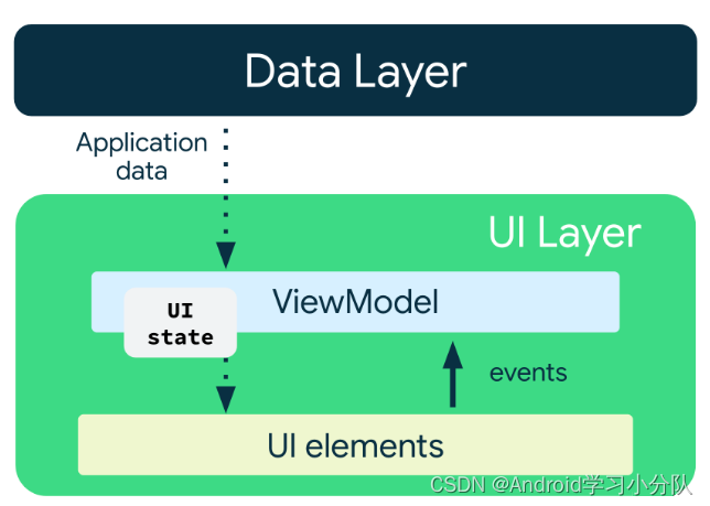 - 界面行为逻辑/界面逻辑:会导致 UI 呈现内容的变化,这一层逻辑应该位于 UI 层中(尤其是涉及 Context 等界面常有的类型时),而非 ViewModel 中。