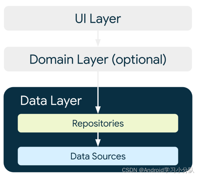 数据层可以由多个数据管理的 Repositories 组成,每个 Repositories 可以包含零到多个数据源。