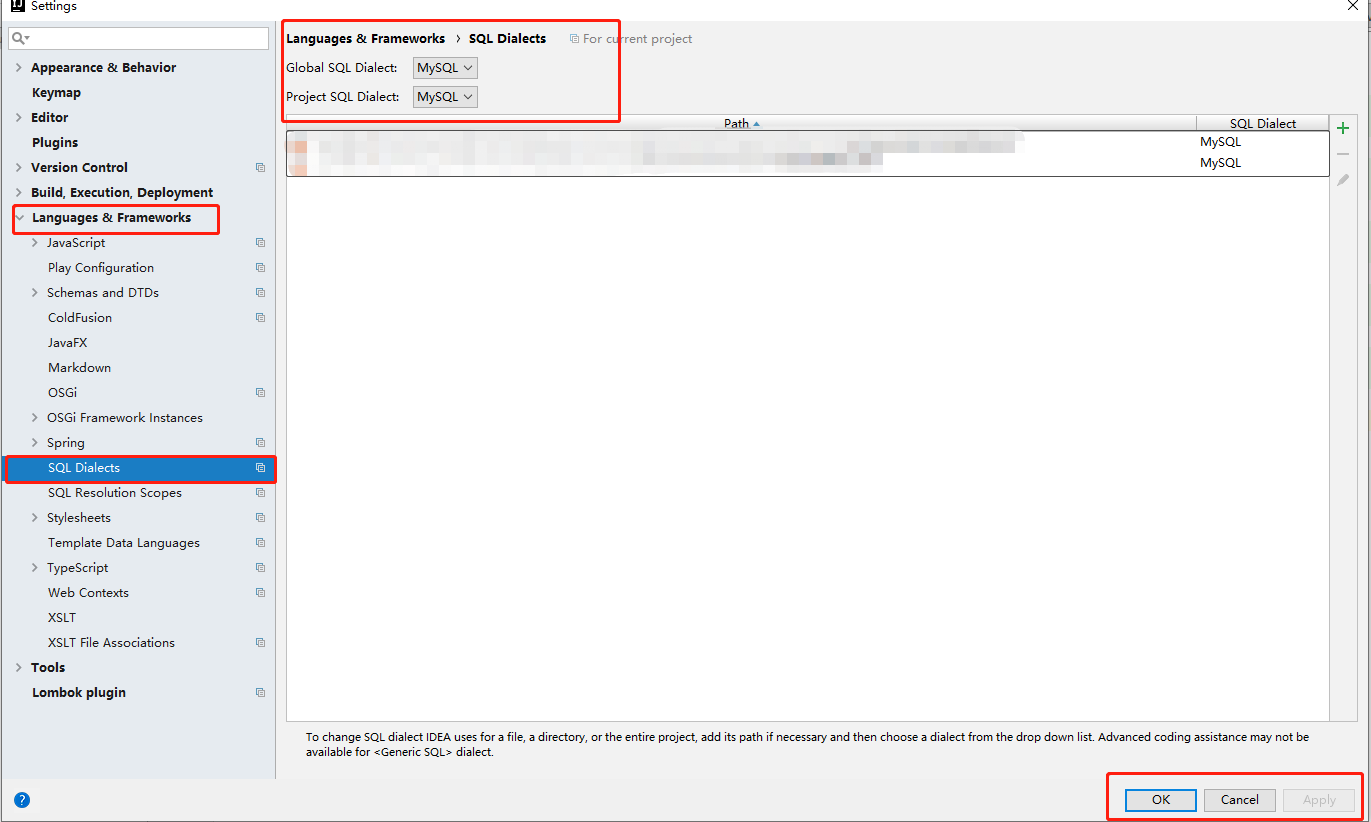 2.点击File==>Settings==>Languages & Frameworks==>SQL Dialects中