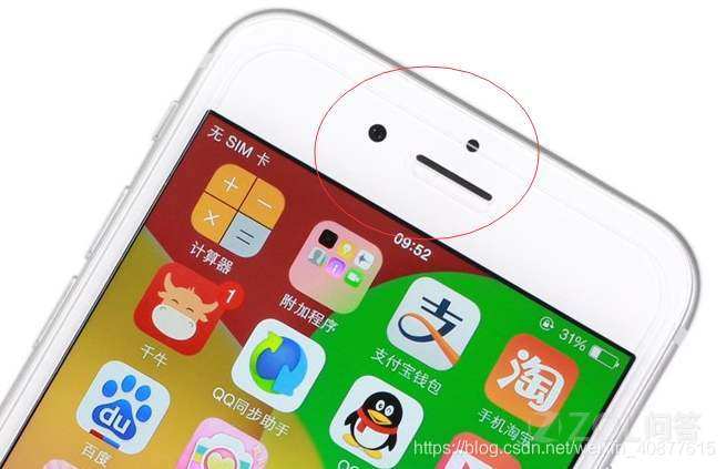 七、手机听筒的配置:手机听筒是手机通话和微信语音聊天的核心设备。听筒一般放置在手机的屏幕顶部(包括防尘网)或者最新的屏幕发声技术等等。例如iphone6s手机的听筒如下图所示。