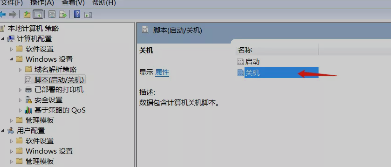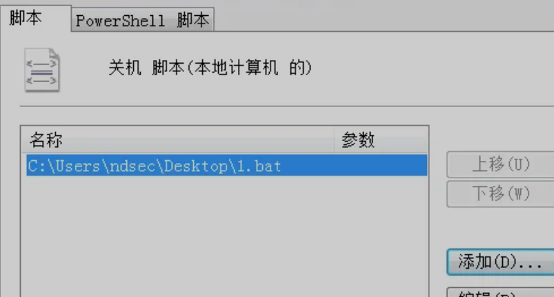 exit打开组策略配置脚本(启动/关机),添加脚本,关机就会自动执行脚本