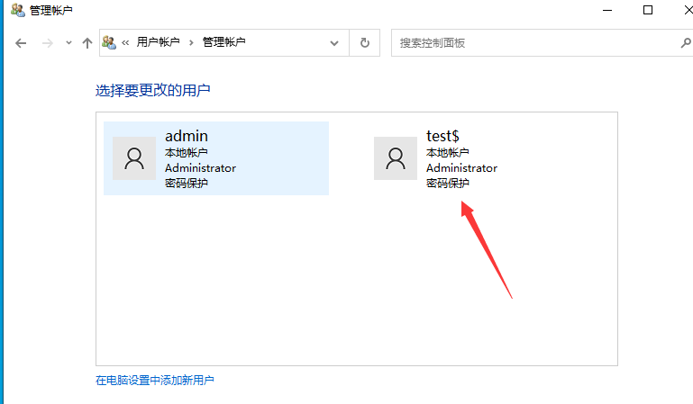 此时在用户组已经看不到test$用户,只能在注册表中能看到。\