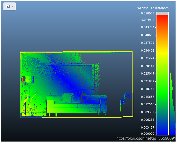 ICL-NUIM数据集是一个RGBD数据集,数据格式和TUM数据集是“兼容”(类似)的,可以用于评估RGBD slam,此外,该数据集还提供了三维环境的真值,因此可以用于对RGBD三维重建结果进行评估,本文主要讲述如何对ICL-NUIM数据集使用CloudCompare这个软件,将三维重建的结果和提供的真值进行比较评估,最终生成一个类似下面这样的热图: