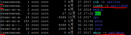 上图文件列表中第一列权限位标识第一个字符显示的是文件类型,-为一般文件,d为目录,而l显示的就是链接文件