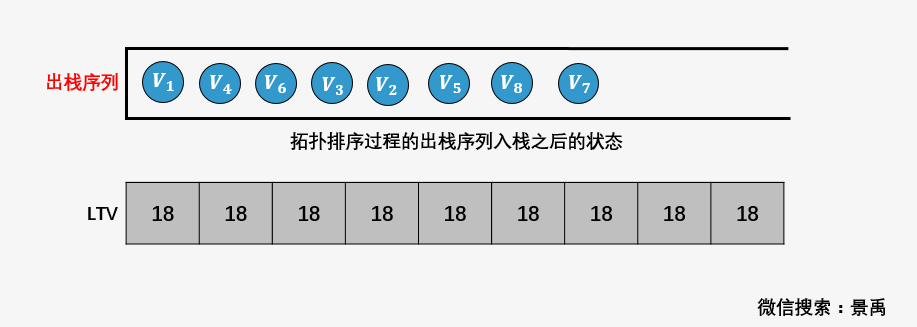 第三步:将顶点出栈,更新 LTV[7] 为 LTV[8] - = 14。