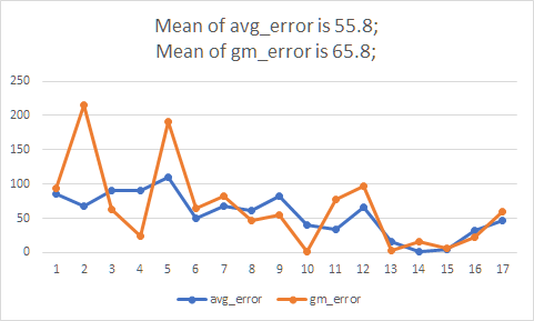 例如,一个早上7点50的石家庄到深圳的航班到达深圳的时间,我统计了7月2号到7月21号的所有时间,然后我们预测7月22号飞机什么时候到达。用上面的gm11函数gm11(data, 1)即可得到大概是11:41到。但是这种预测有没有含金量很难讲,毕竟基于20天的平均飞行时间,我也能得到类似的结果11:46。于是我决定用已有的数据进行验证,即用7月2号到4号的数据预测7月5号的,然后得出预测的绝对残差,毕竟我们知道7月5号的到达时间,然后依次类推,直到用7月2号到7月20号的数据预测7月21号的到达时间为止,我们分别用两种方法,平均值法和灰色预测法,结果大跌眼镜。