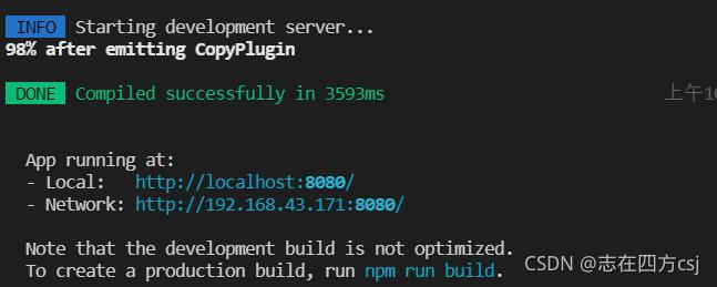 最后可以使用npm run dev 查看是否能成功运行,如下图就是成功啦