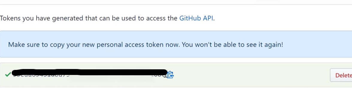 完成后页面会跳转,生成令牌,令牌只出现一次,一定要保存