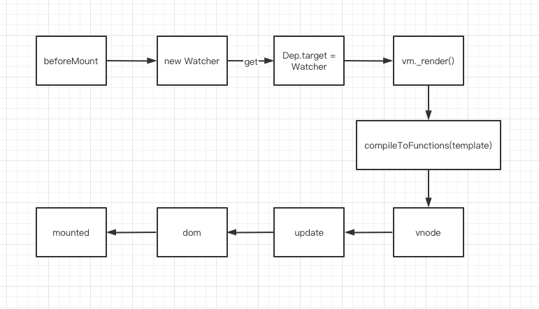 到这里,我们就知道了 Watcher 其实是在 Vue 初始化的阶段创建的,属于生命周期中 beforeMount 的位置创建的,创建 Watcher 时会执行 render 方法,最终将 Vue 代码渲染成真实的 DOM。