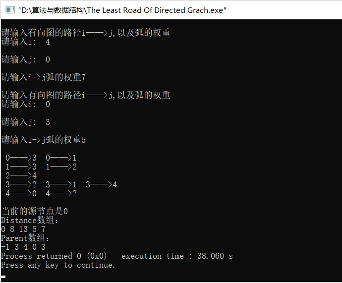 2.如果从当前节点到这些邻接点的距离更短,那么更新这些邻接点的父节点数组为当前节点,距离数组为当前节点的距离数组+这些邻接点与当前节点之间弧的权重;