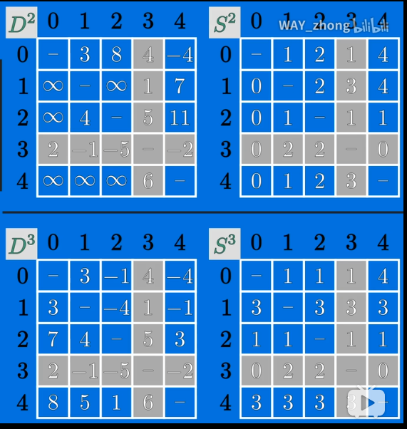 比如Plain[i][j]=k,那么从i到j的最短路径就要经过k节点,那么就去Plain[k][j]查看Plain[k][j]的值是否为j,如果为,那么最短路径就是