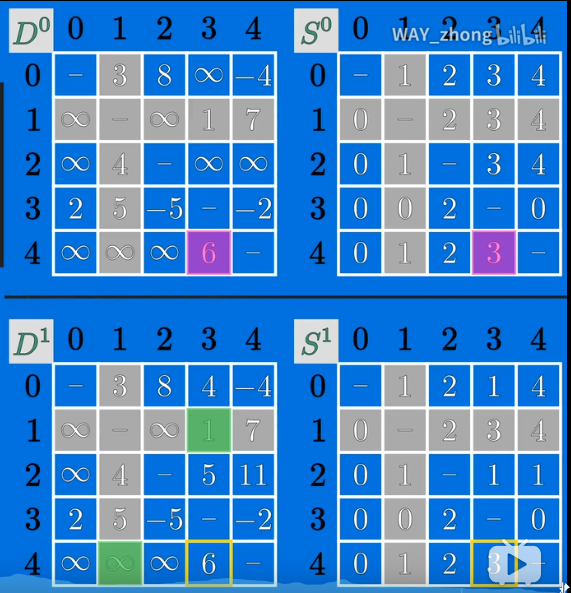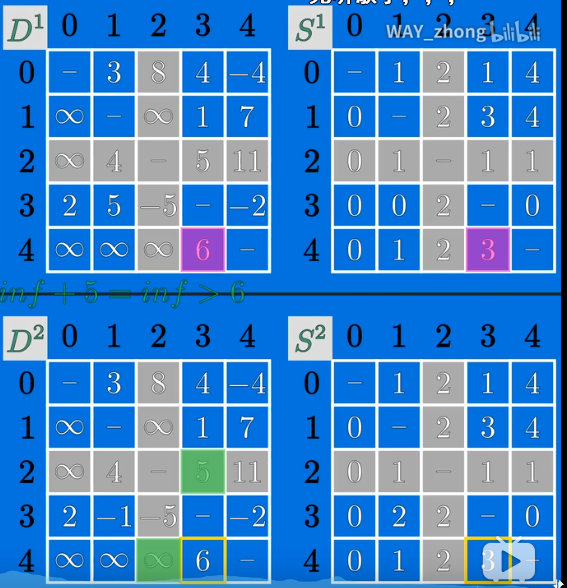 5.最后还有更加重要的一点就是如果i无法到达k的话,就不能更新,因为当k到j的弧的权重为负数的话就会发生非常不好的结果,我深有体会!