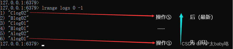 操作⑥:查看当前总日志-logs的数据(查看的信息以哪边为队列头或栈头需要提前约定好)