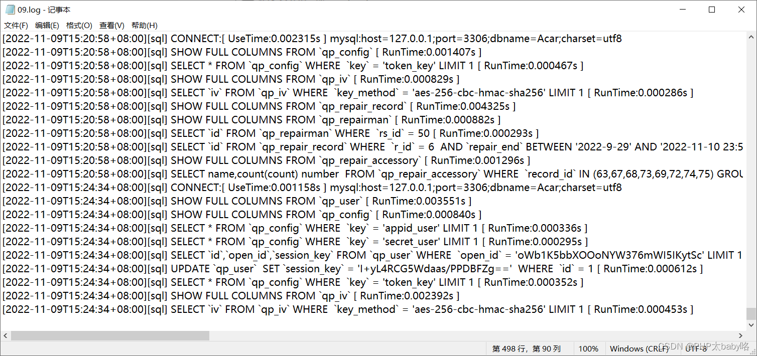 比如我打开某框架中对mysql操作日志的记录(以最新追加的形式写入日志文件):