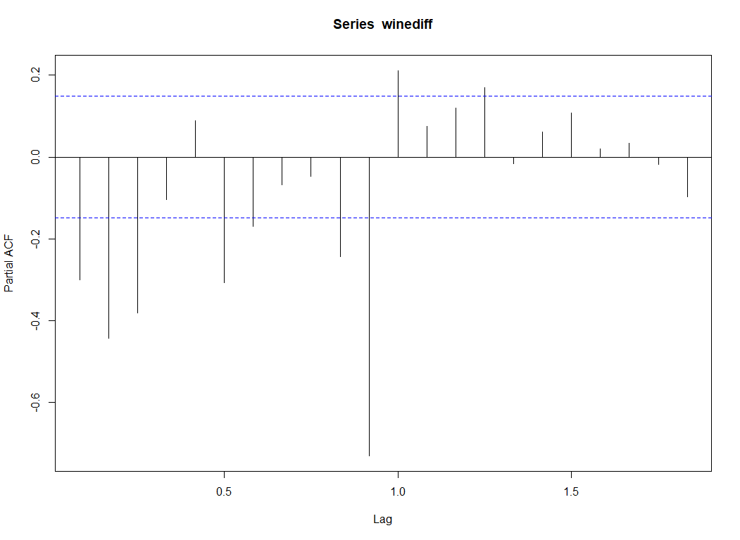 > pacf(winediff) #绘制偏自相关图