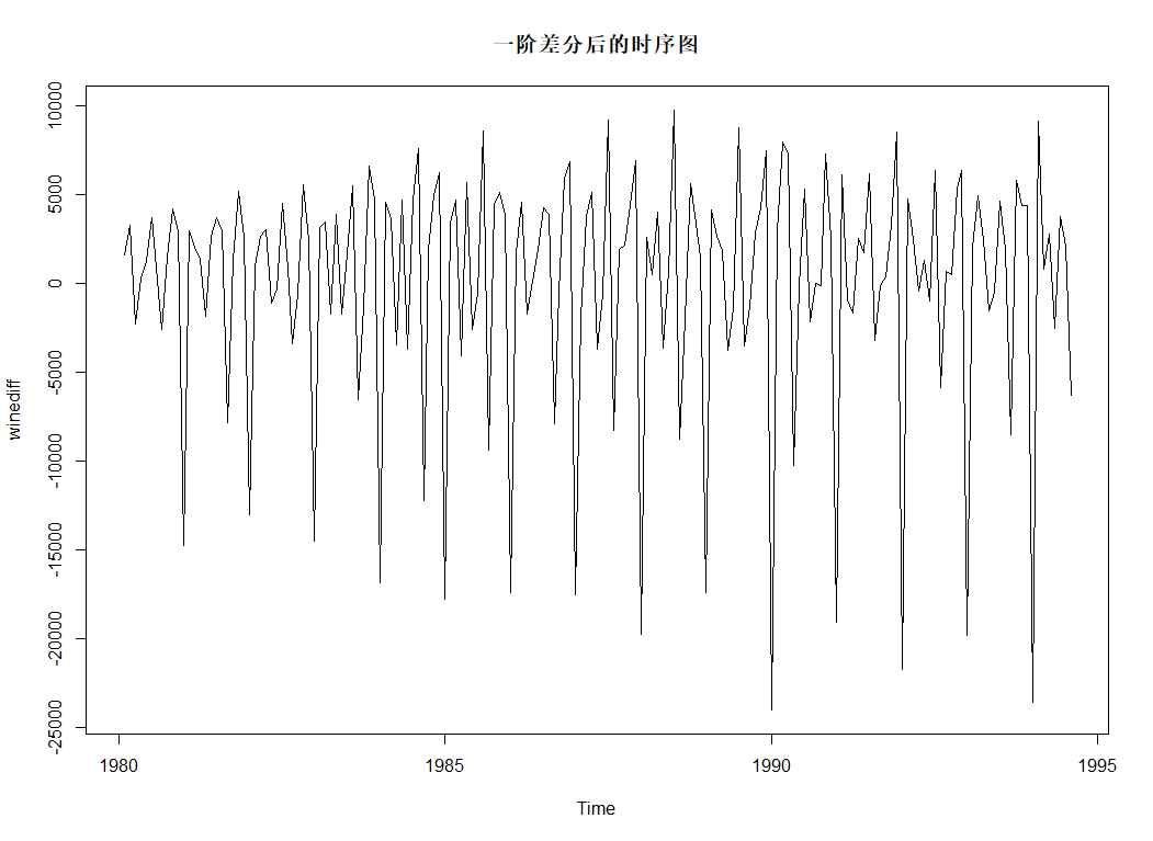 > plot.ts(winediff,main="一阶差分后的时序图")