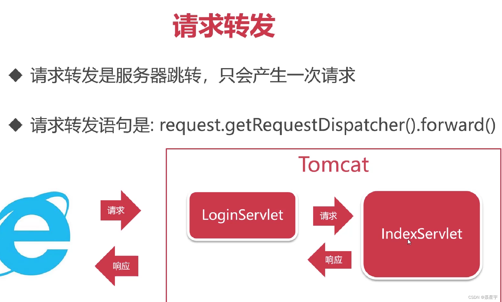 3.请求转发通常用来进行跳转时携带数据的,这里的跳转可能是servlet到servlet,也能是其他目标。其根本作用是用来携带数据。