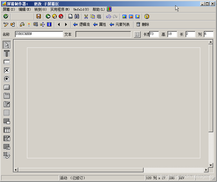 3.在屏幕100中绘制一个子屏幕区域并命名为SUBSCREEN