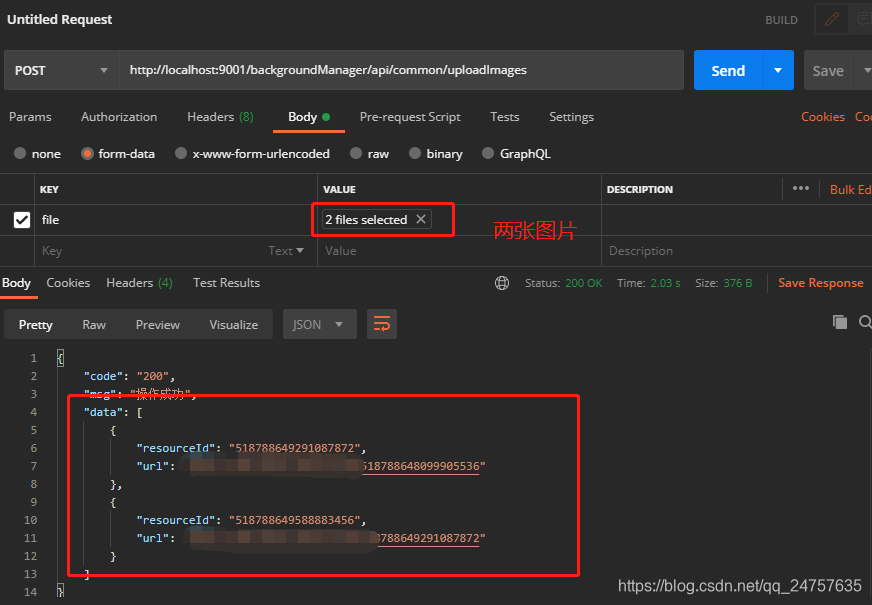 @ApiOperation(value = "批量上传图片")