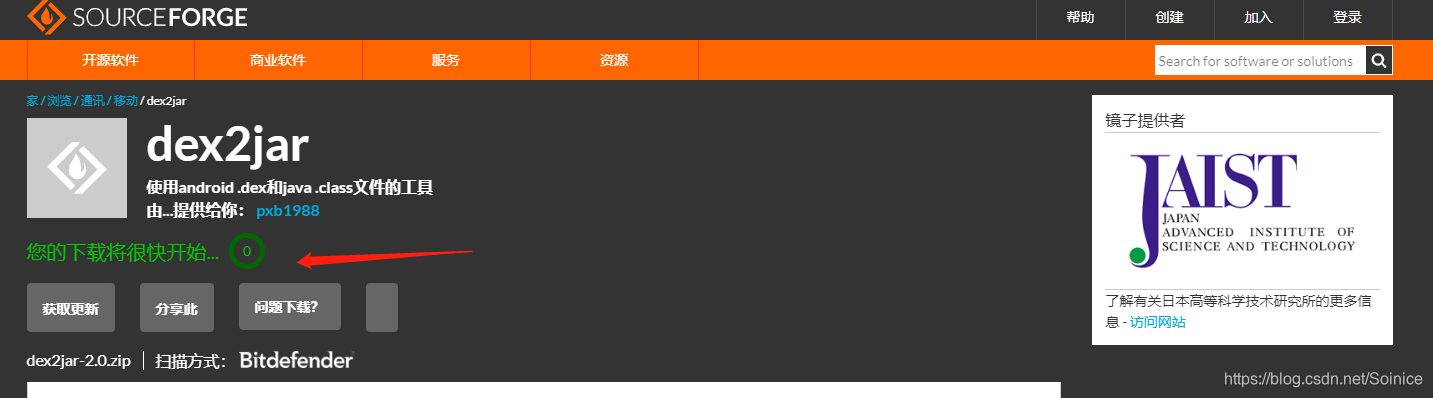 官方点击:https://sourceforge.net/projects/dex2jar/files/latest/download