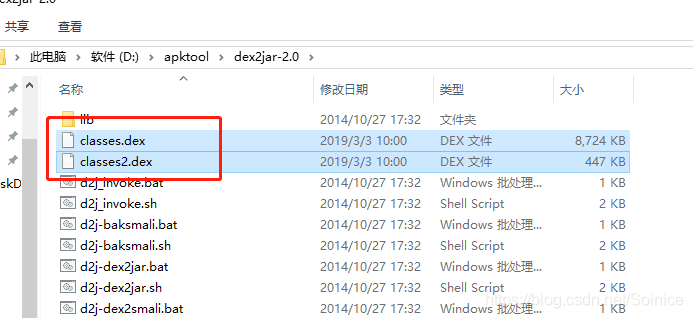 将要反编译的 dex 复制到 dex2jar-2.0 根目录: