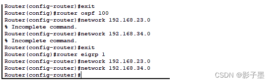 在router1和router2上分别配置rip和ospf之间的路由重发布、ospf和eigrp之间的路由重发布