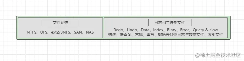 这一层则是MySQL数据库的基础,本质上就是基于机器物理磁盘的一个文件系统,其中包含了配置文件、库表结构文件、数据文件、索引文件、日志文件等各类MySQL运行时所需的文件,这一层的功能比较简单,也就是与上层的存储引擎做交互,负责数据的最终存储与持久化工作。