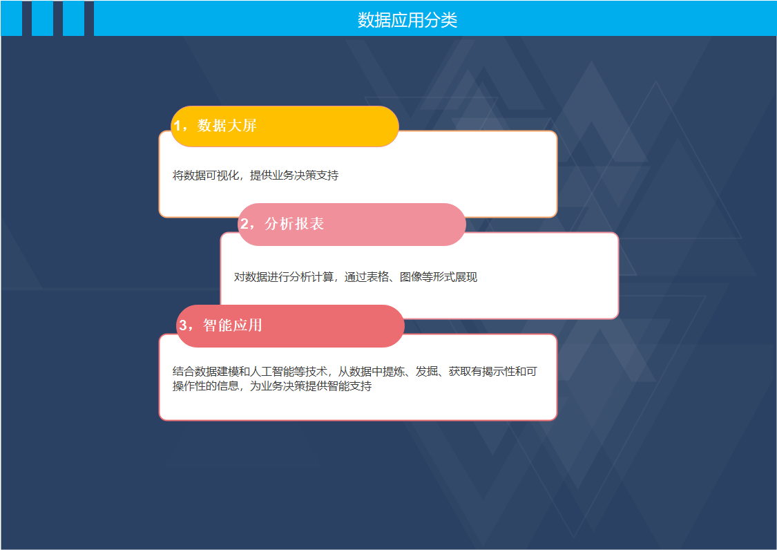 数据应用是产生业务价值的最后一个环节,也是所有业务人员和技术人员关注的焦点。在建设数据中台之前对可能开展的数据应用进行相对系统的规划。