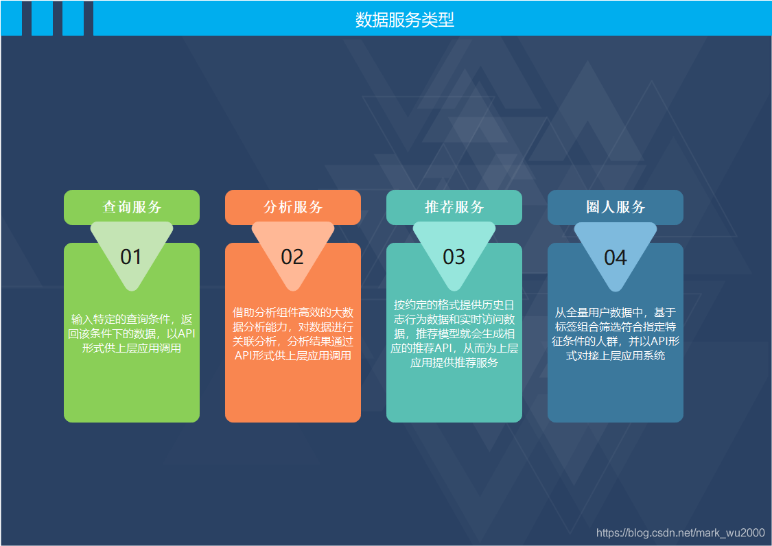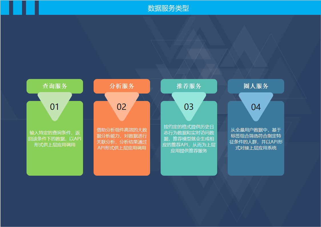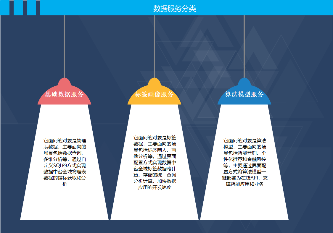 数据服务是对数据进行计算逻辑的封装,生产API服务,上层数据应用可以对接数据服务API,让数据快速应用到业务场景中。
