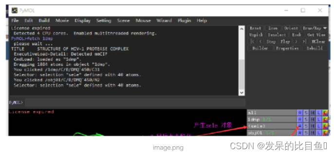 把上述残基选中以后会临时保存在sele的object中,我们把它复制到obj01的Object中,