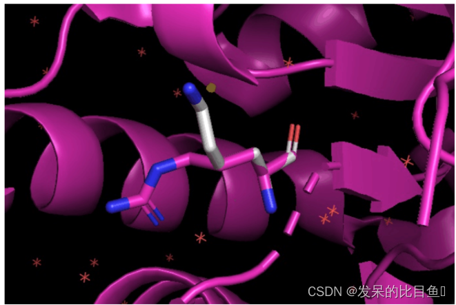 由于4hbk蛋白中没有小分子,这里我以PDB id:为例演示。点击A->preset->ligand sites效果如图所示,其中黄色的虚线就是氢键。