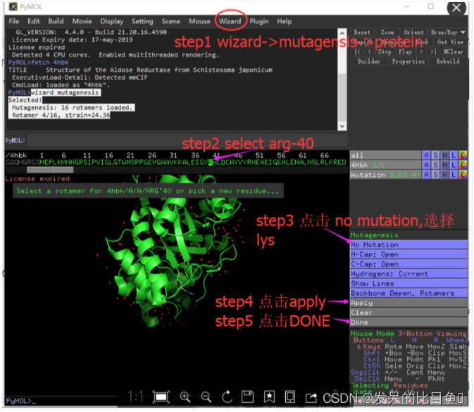 - 缩放,按住鼠标右键不放,然后上下移动,蛋白会进行缩放