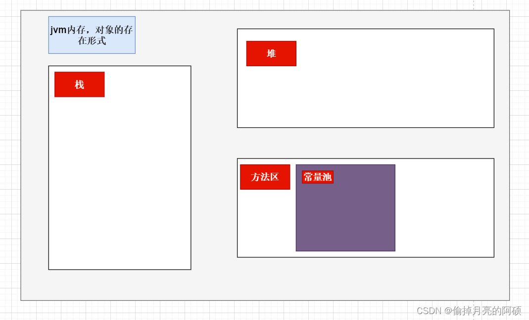 首先我们回顾以下Java中jvm的虚拟内存存储机制,其中包括栈,堆和方法区
