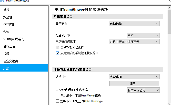 Teamviwer远程连接提示确认,修改配置改为不需确认1,点选项。2,点高级。3,把所有的东西点成完全访问。版权声明:本文为napolang原创文章,遵循CC 4.0 BY-SA版权协议,转载请附上原文出处链接和本声明。原文链接:https://blog.csdn.net/napolang/article/details/99297088