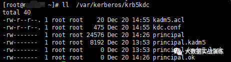 当Kerberos database创建好后,可以看到目录 /var/kerberos/krb5kdc 下生成了几个文件: